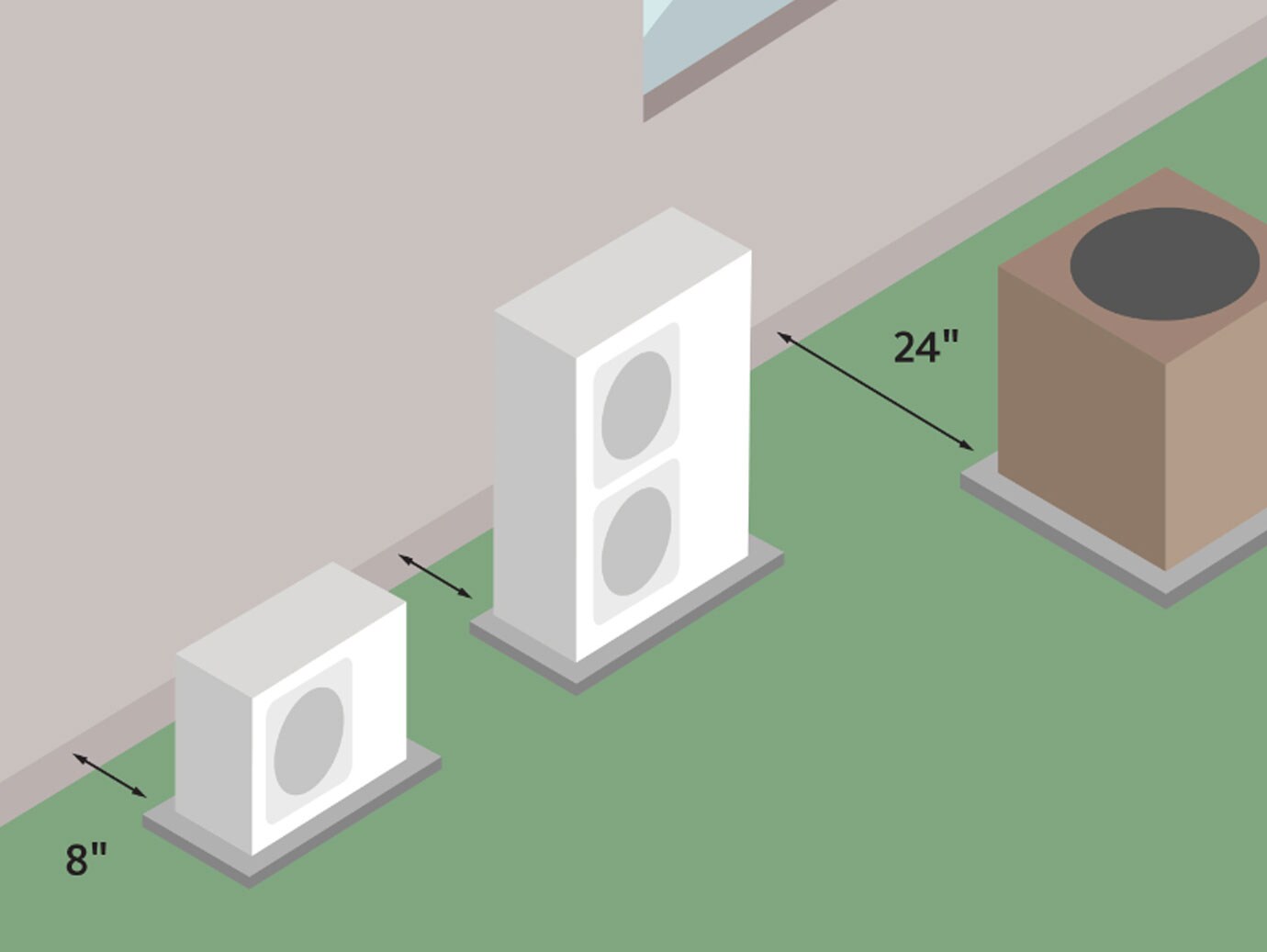 The side-discharge design of the Fraser-Johnston® HMH7 is more efficient than traditional top-discharge designs in both size and operation. Snow and organic debris won’t hamper operation, and the sleek design results in 36% quieter operating volume and a 40% smaller footprint compared to standard heat pump units. With a setback distance of only eight inches, the HMH7 is perfect for high-density areas, unlike traditional horizontal-discharge units, which often require at least 24 inches.
